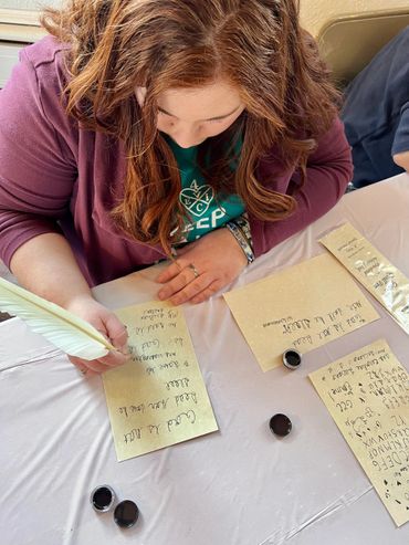 Thank you SO much for coming yesterday and for the amazing quill and ink class!  Everyone had a wonderful time and it was simply lovely. I know the adults were blown away- I attempted to talk up the class, but I know you exceeded their expectations.  The one grandmother said she thought it would be a nice activity for the two girls, but she wished she had thought of questions ahead of time  because she was so impressed with your knowledge and she hadn’t realized how incredible the class would be.